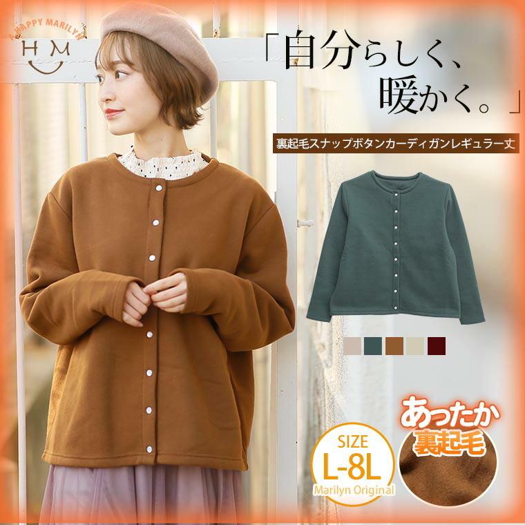 大きいサイズ レディース カーディガン 長袖 レギュラー丈 あったか裏起毛 スナップボタン クルーネック 羽織り 秋冬服 30代 40代 50代 ファッション Ma 大きいサイズ レディース マリリン 通販 Yahoo ショッピング